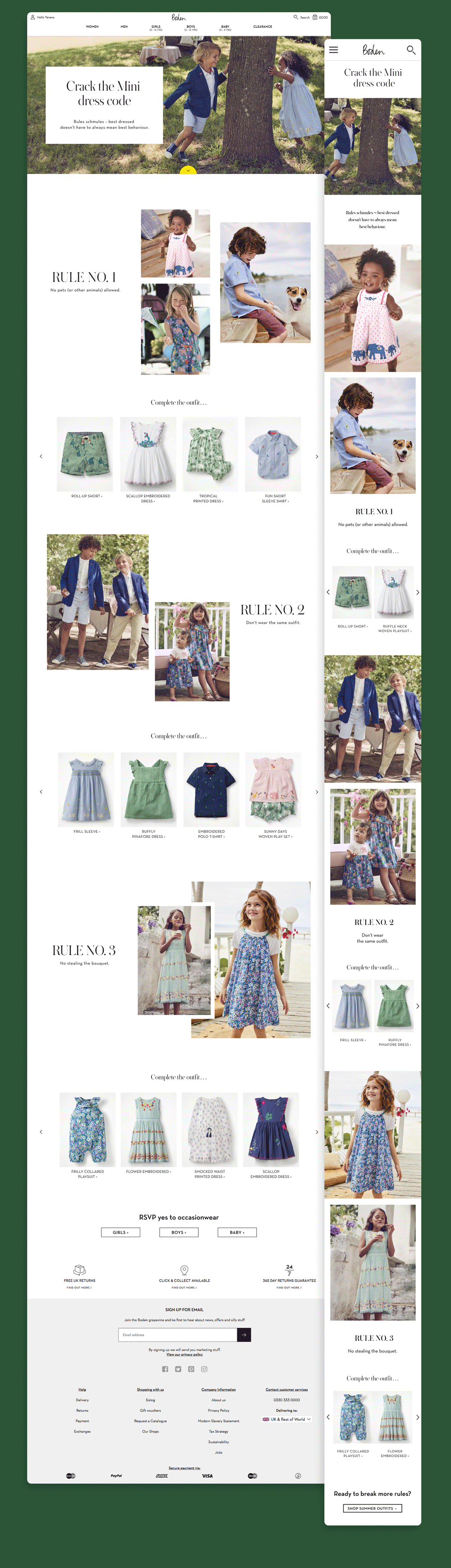Boden is one of the leading British fashion brands with a focus on womenswear and childrenswear. It is a project focused on the “Inspire me” section of the webpage. In this case, I designed a series of UX prototypes and finalized them with visuals.