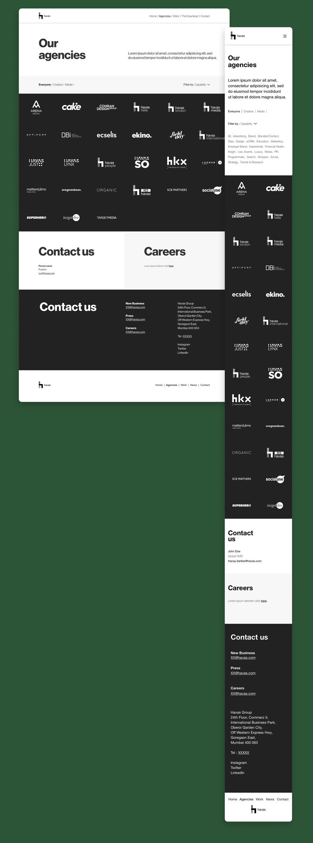 Working in a team with Creative Director and UX designer I had the pleasure to be the main designer developing a UX/UI template, which would be used later as the base for all the companies under the HAVAS GROUP around the world.